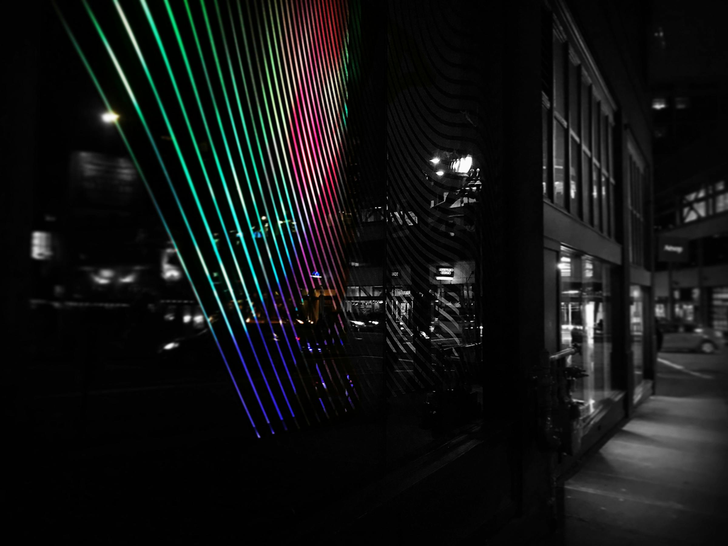 The satellite entry into Portland Winter Light Festival was focused around our storefront entrance. Viewers of the installation outside were looking into our space through a series of apertures strategically vignetting the scene. Playing with the public/private dynamic of the street experience, our theme of regeneration is be revealed and experienced through the perceivable qualities of light, shadow, and color. The installation used both analog and digital light sources, and 3D printed surfaces.