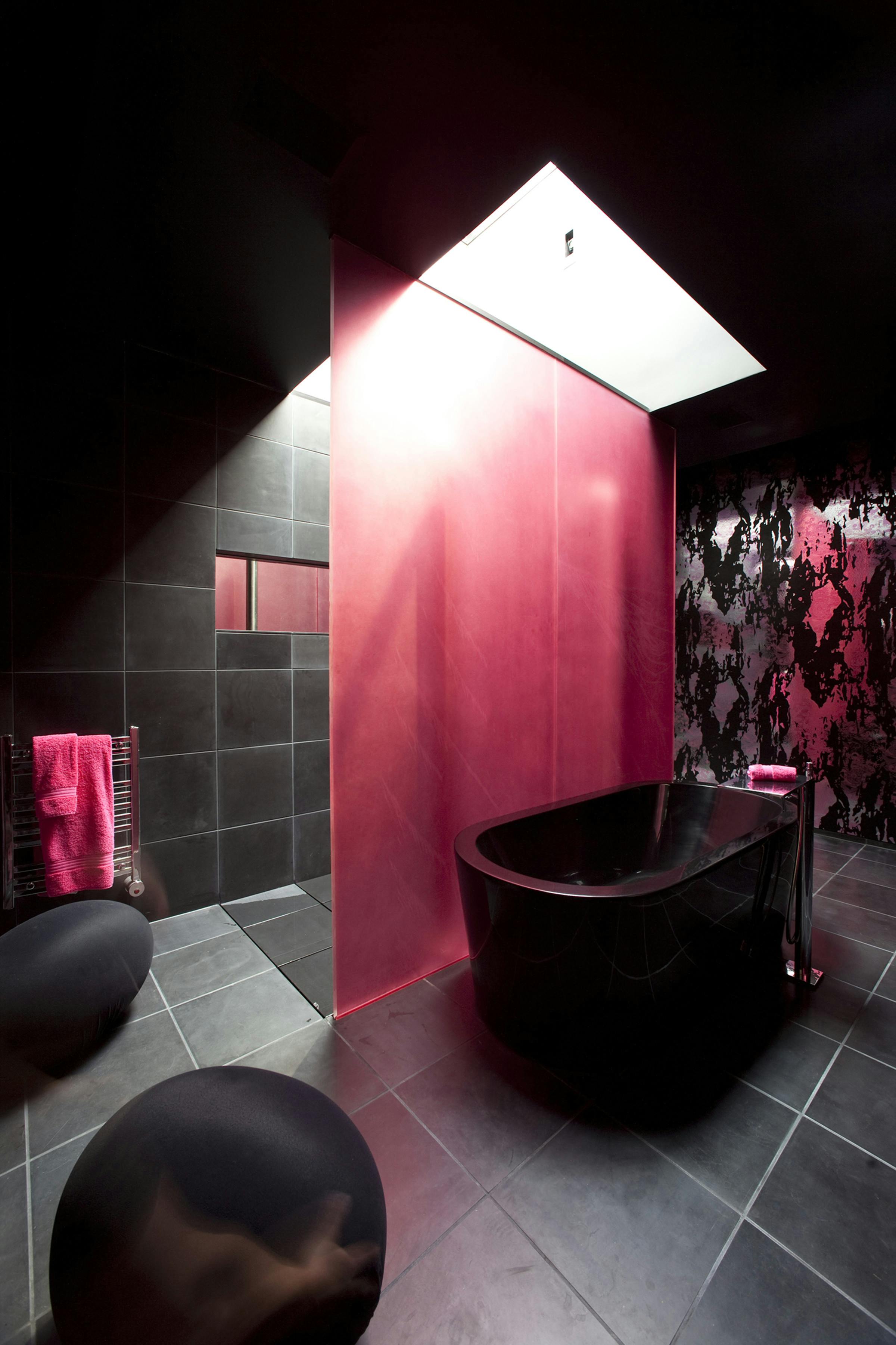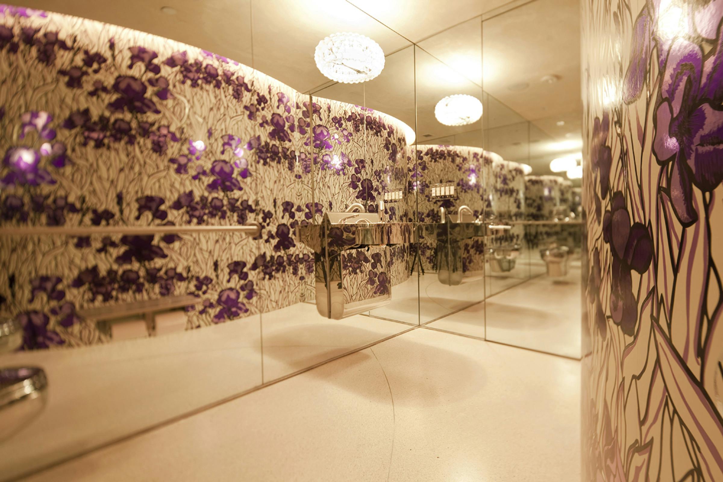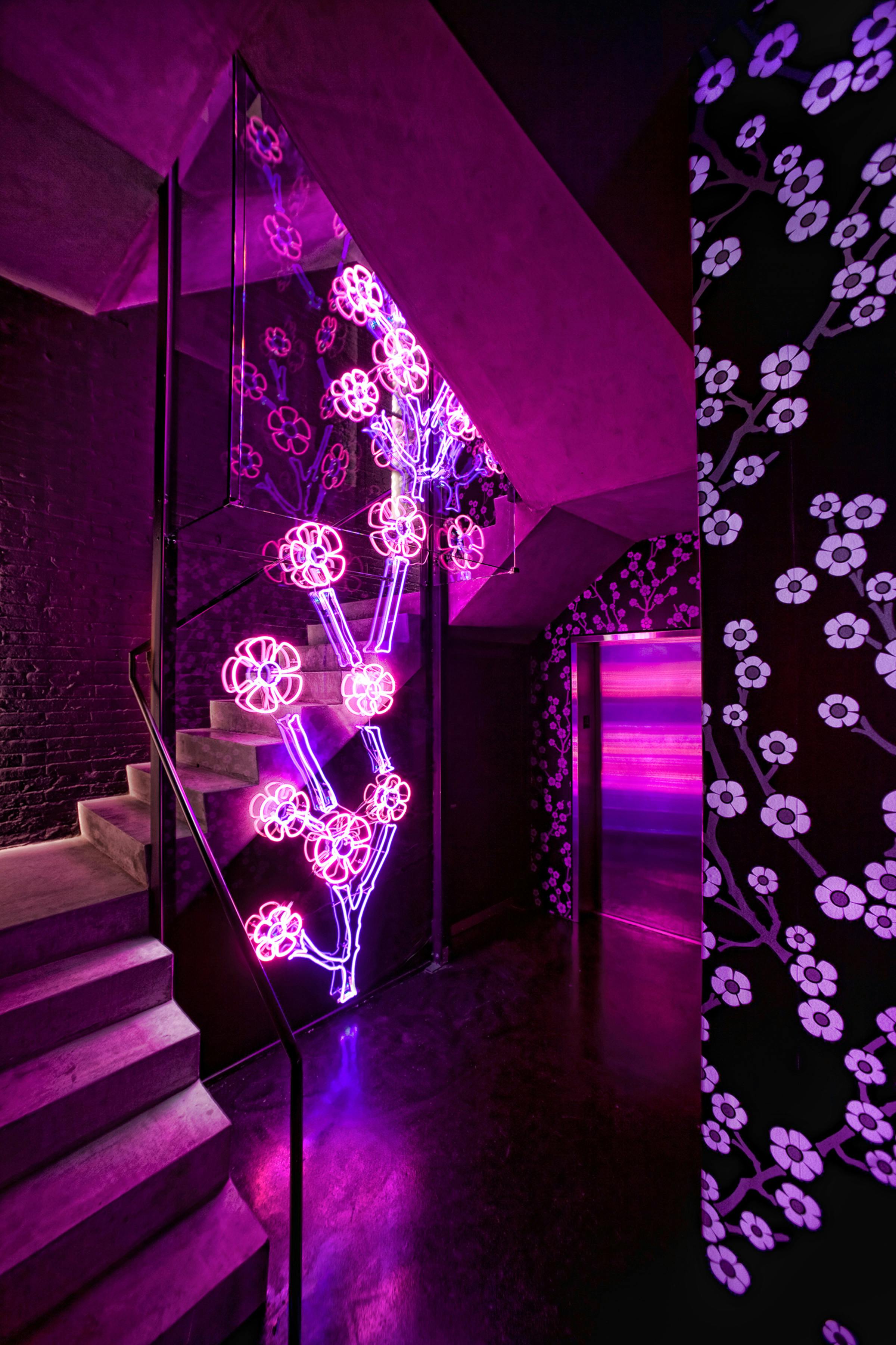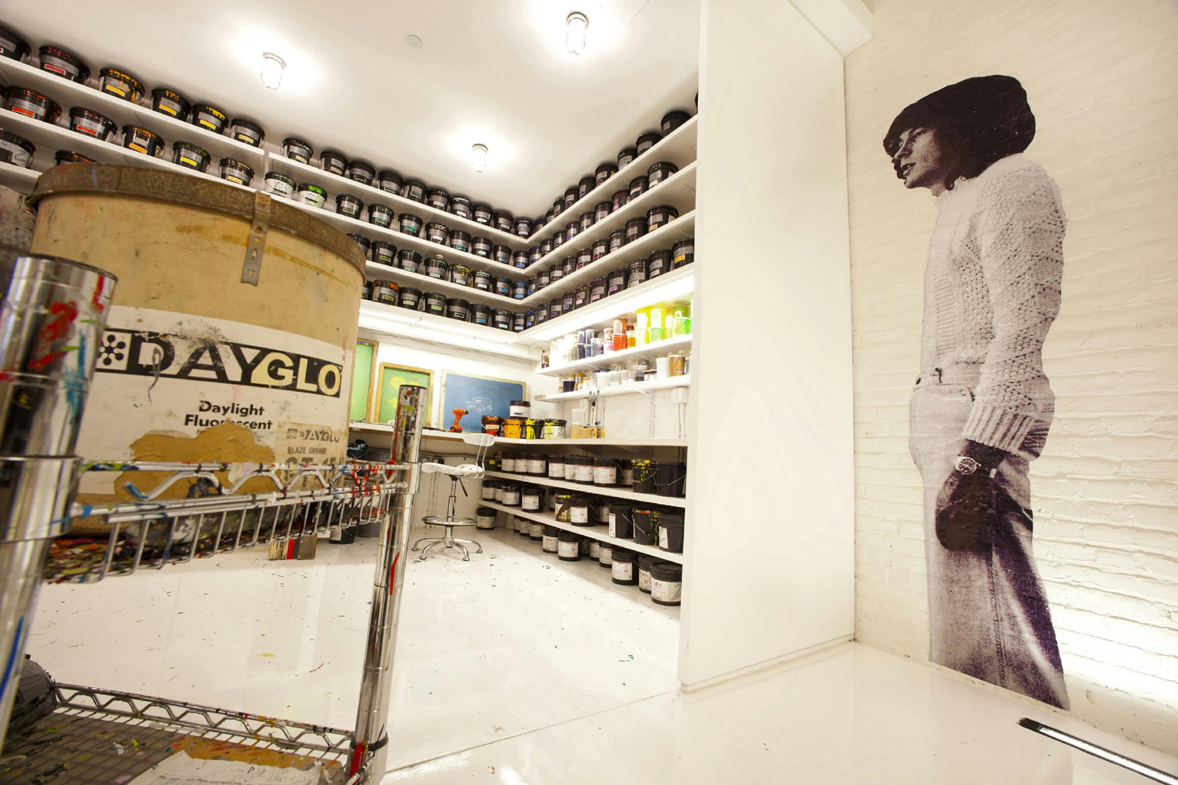 Flavor Paper is a bold, adaptive-reuse project transforming a four-story concrete parking garage in Brooklyn, New York into a 13,500 sf hybridized commercial and residential space. Specializing in custom hand screen printing wallpaper, Flavor Paper needed a new space for wallpaper production as well as a comprehensive way to showcase it to the public. Skylab converted the former parking structure to house the production facility, showroom, as well as two residential levels and an eco-roof deck. Two 50 foot long wall- paper screening tables were placed in the middle of the ground floor space allowing the mirrored ceiling to reflect the color and pattern of the paper, transmitting it out through the glass canopy to the street and the pedestrian traffic strolling by. Overall, the project was an experiment in creating a multi-use space that not only served functional production needs, but also added aesthetic beauty and cultural relevance to the neighborhood.