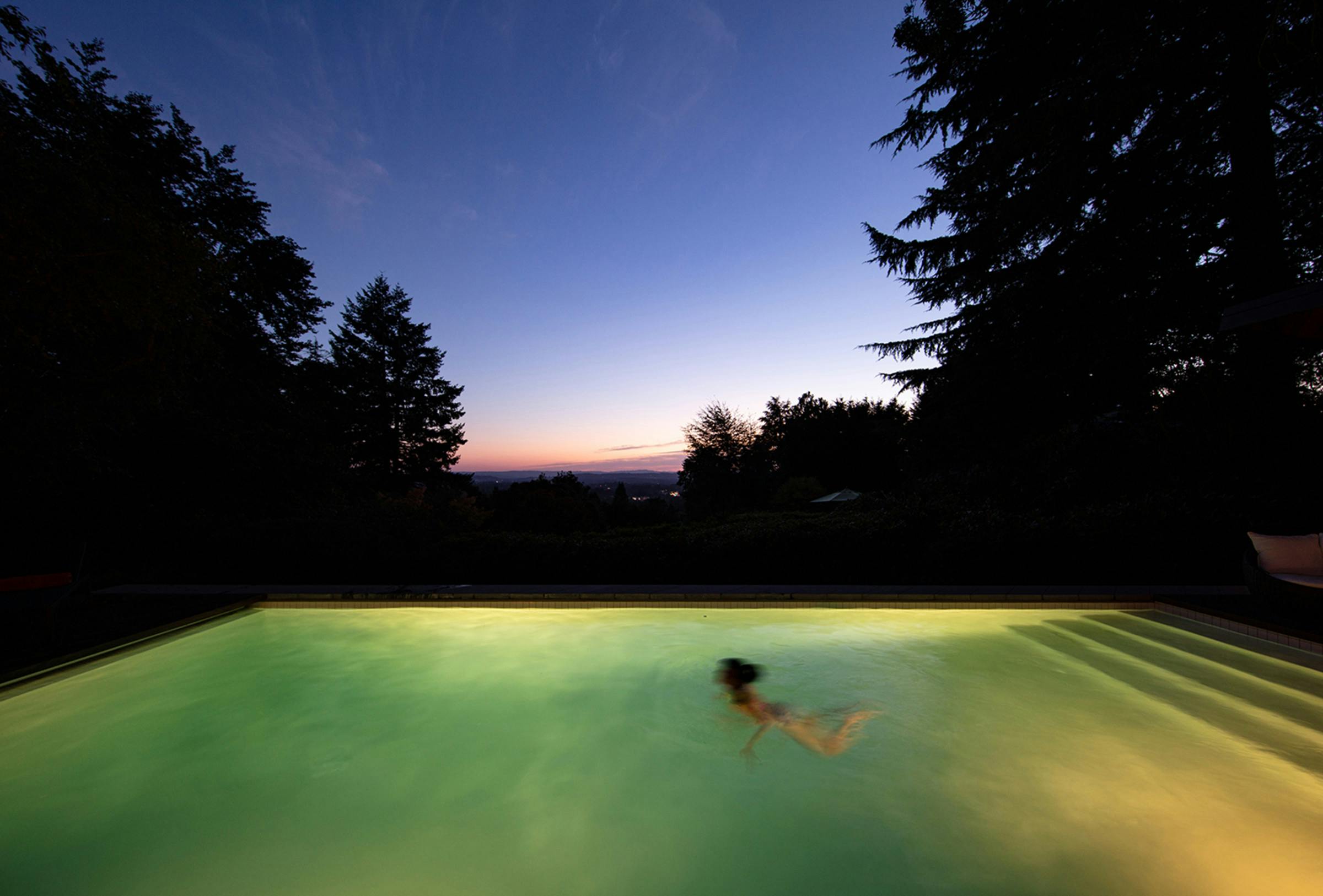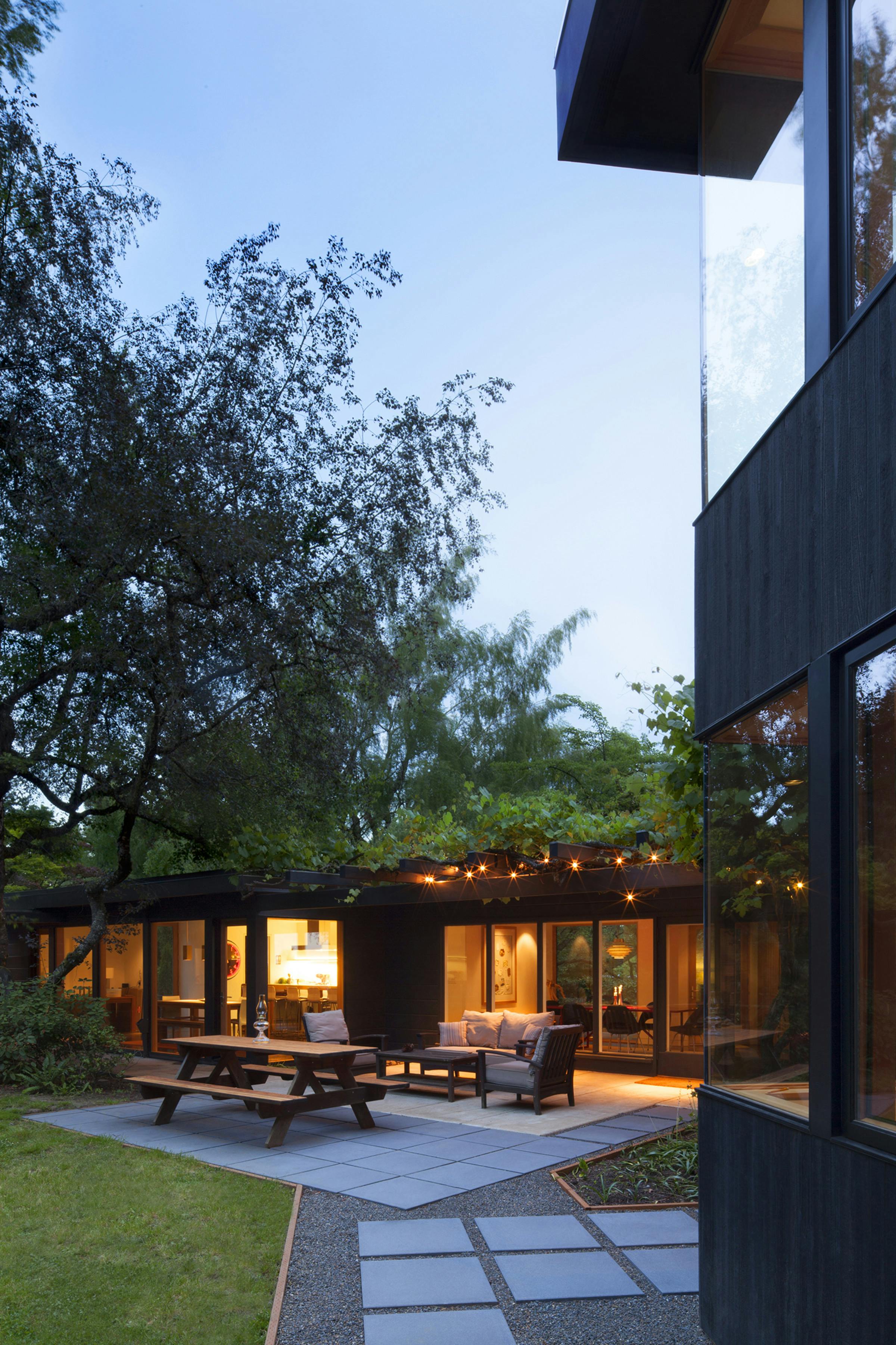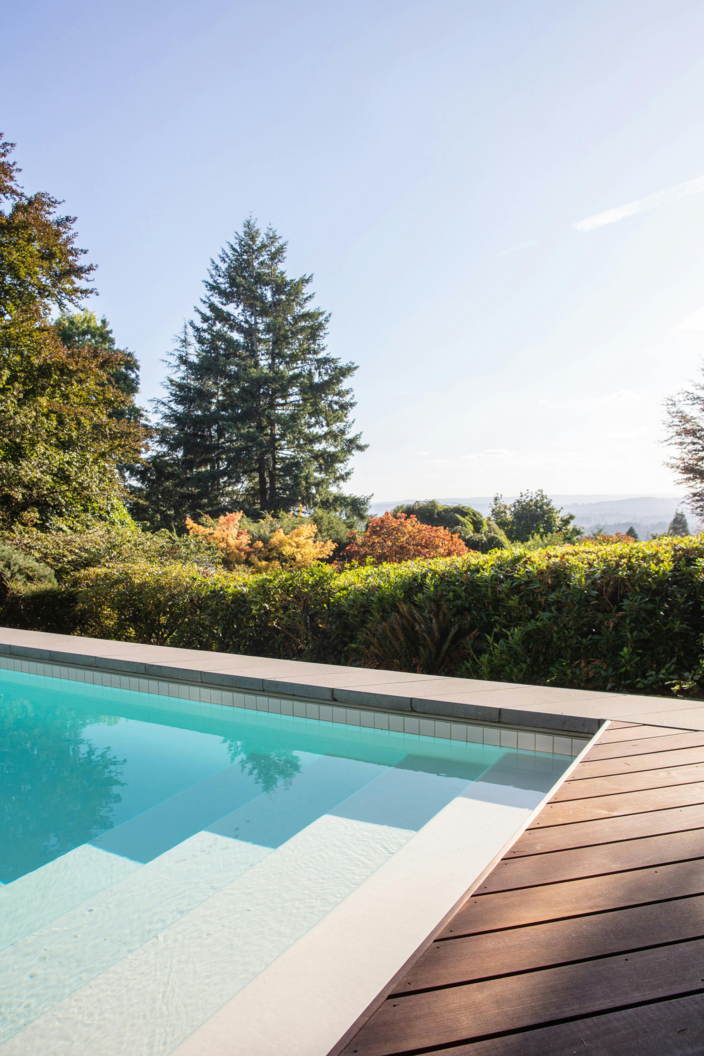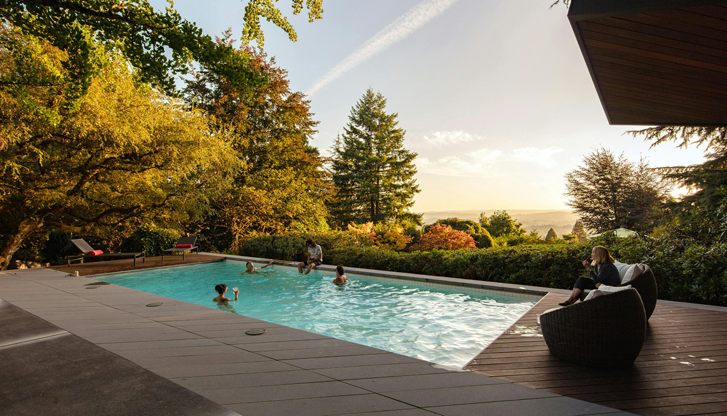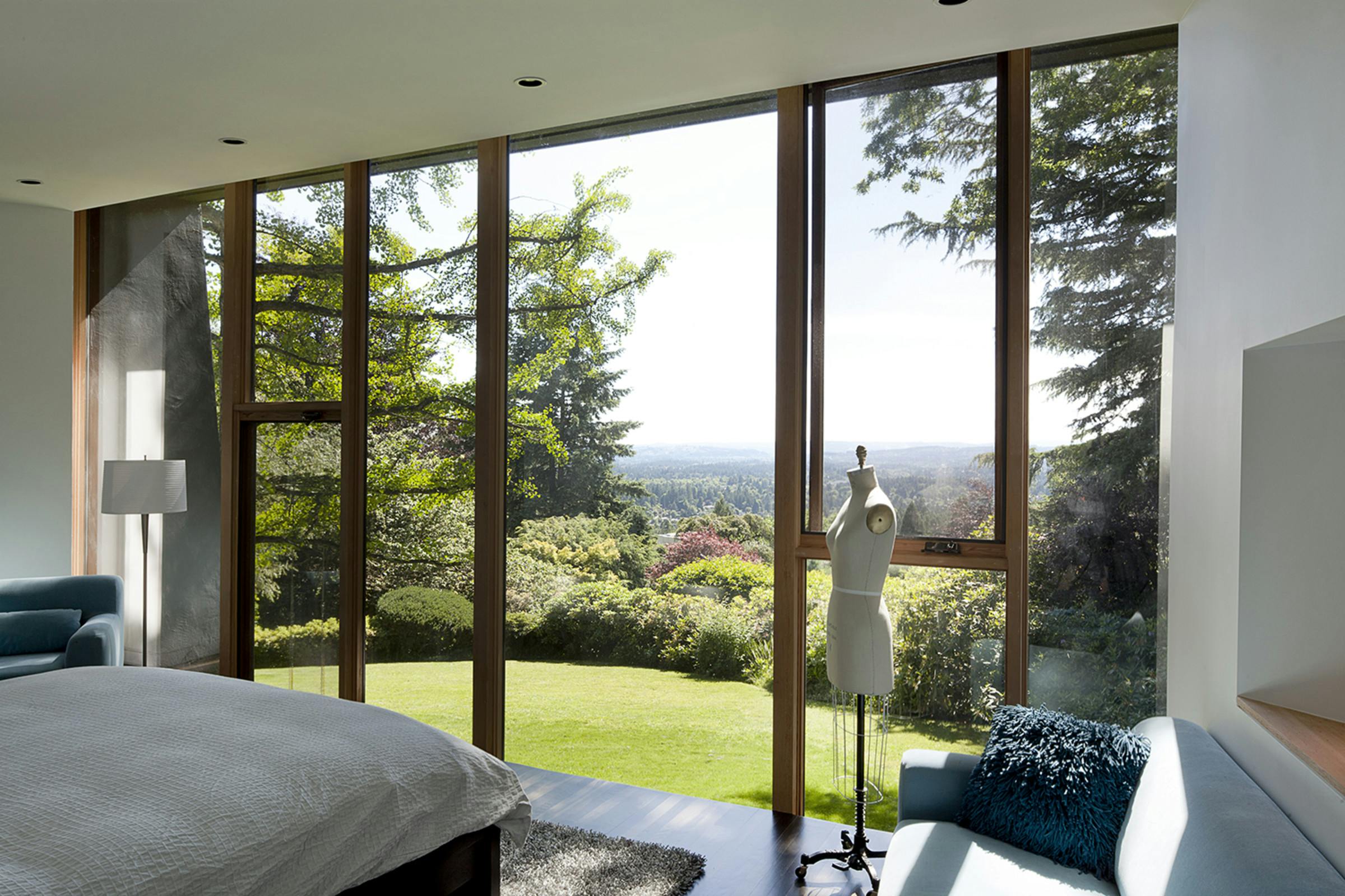 Located in NW Portland hills, the Meschter Residence is a remodel and expansion of a mid-century modern residence. The new home is nestled in a lush Pacific Northwest wooded landscape and a secluded courtyard, connecting with the pine forest. The home is positioned to capture spectacular views of the hills and beyond to the west.