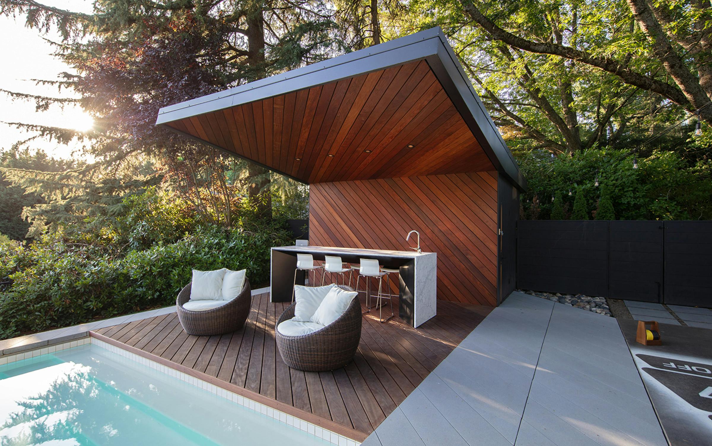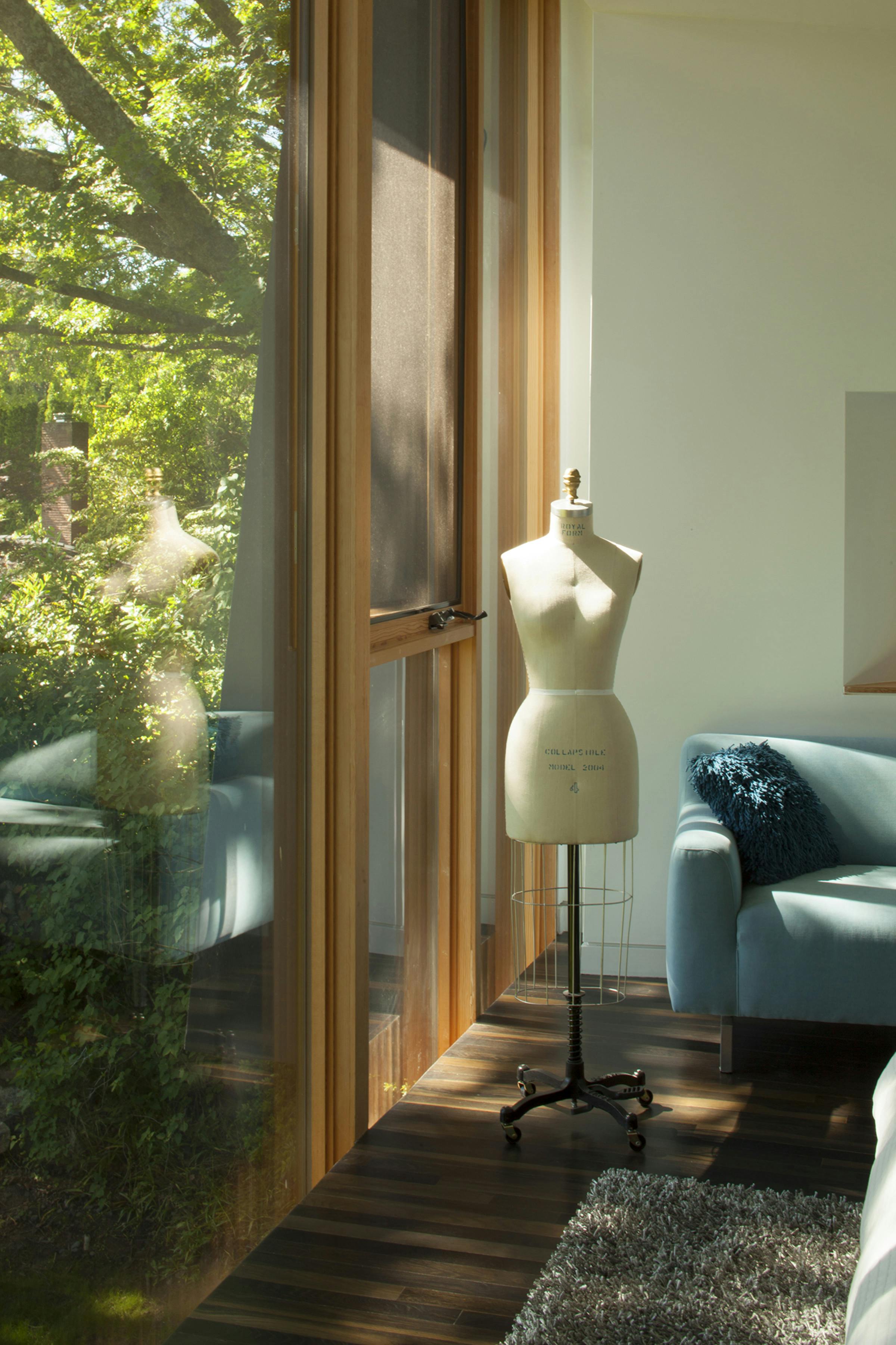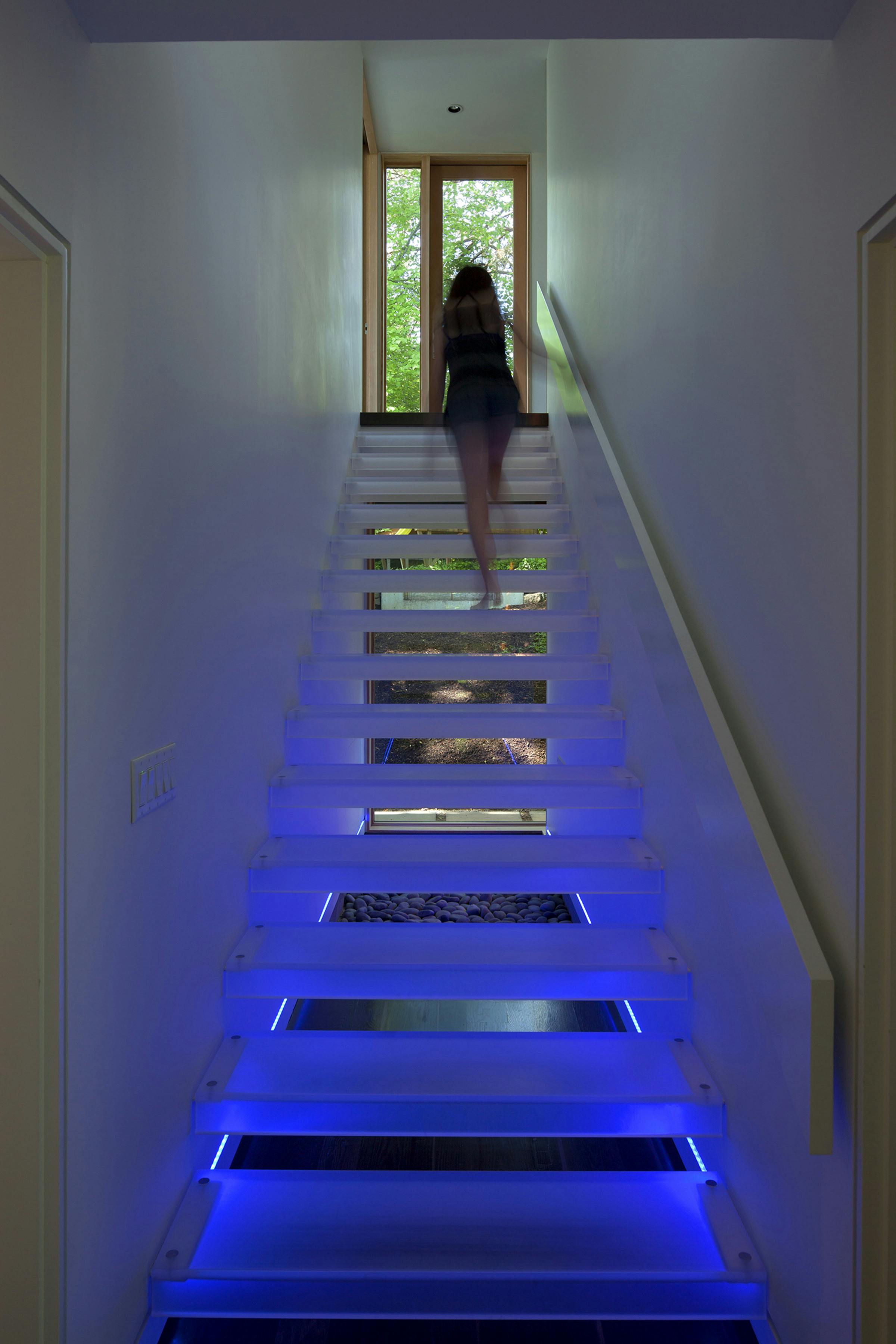The third sleeping wing addition includes three ground floor garden-access bedrooms and one elevated second level master suite. A new transparent staircase was designed as a key focal element of the new wing, leading to the master suite. The pool addition further expands the house to create an outdoor living room and a second kitchen counter for entertaining.